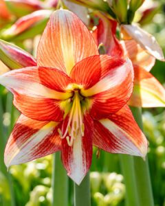 If there is one flower that manages to steal the show with an almost tropical look, it’s the amaryllis. Although we’re quite familiar with this bulb as an indoor blooming winter wonder, there is also a hardy outdoor variety: the garden amaryllis. This amaryllis will provide an impressive floral display in late spring.